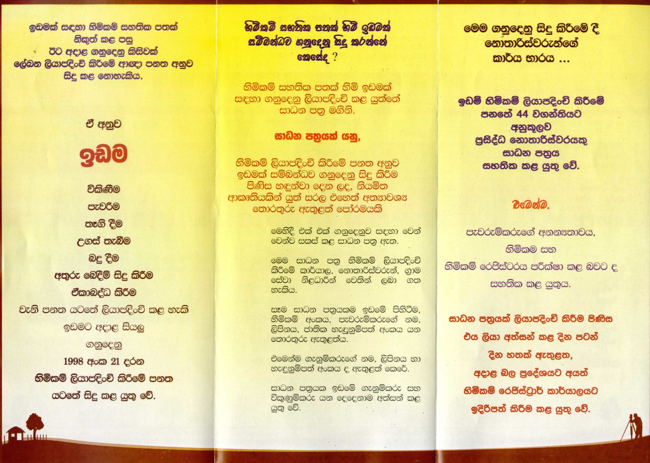 හිමිකම් සහතික පතක් හිමි ඉඩමක් සම්බන්ධව පසු ගනුදෙනු සිදු කිරීම I